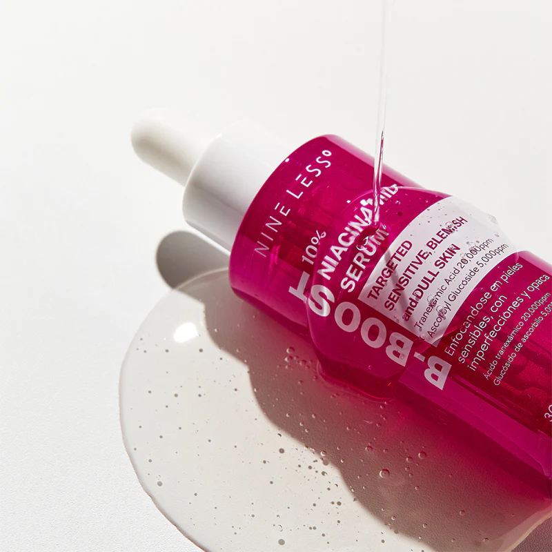 Revive dull, uneven skin with the NINE LESS B-Boost 10% Niacinamide Serum - a powerful daily treatment designed to visibly improve tone, texture and clarity. At the heart of this formula is 10% niacinamide (Vitamin B3), known for its ability to minimise the look of enlarged pores, smooth rough texture and support overall skin elasticity.