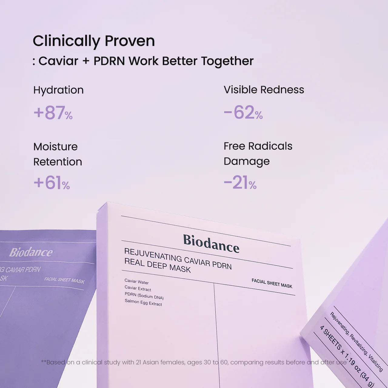 - High-concentration caviar complex: Improves skin plumpness, elasticity and radiance