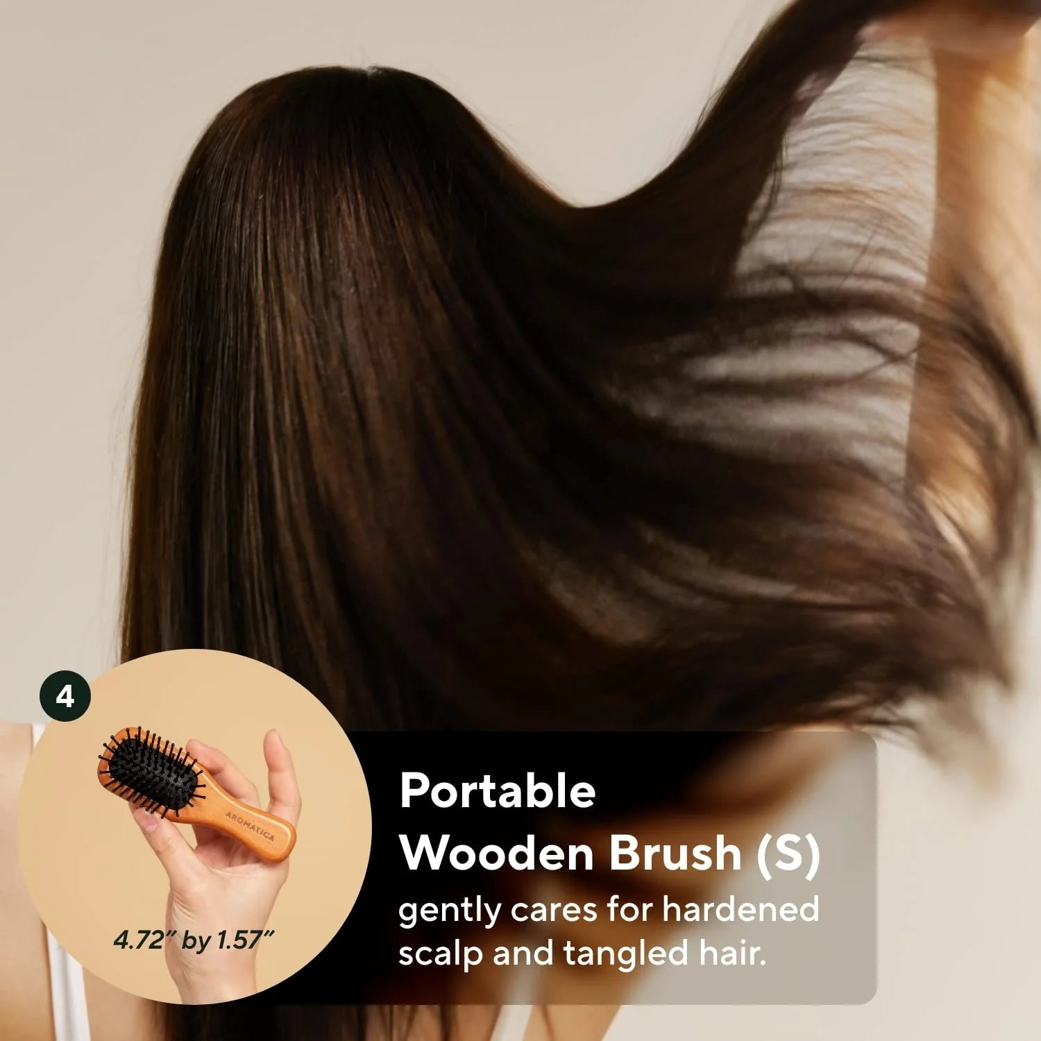 - Wooden Scalp Brush: A natural wooden brush designed to gently stimulate the scalp, support circulation and enhance product absorption.
